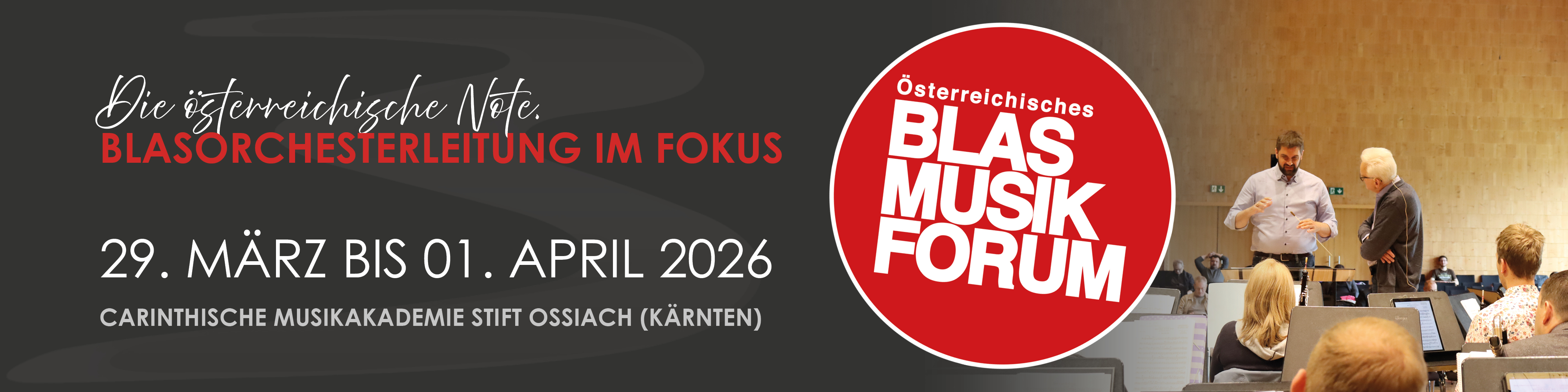 Vom 29. März bis 01. April 2026 ist es wieder Zeit für das Österreichische Blasmusikforum in der CMA Stift Ossiach. Das Österreichische Blasmusikforum bietet im Jahr 2026 einen modernen (inter)aktiven fachlichen Austausch auf mehreren Ebenen.
